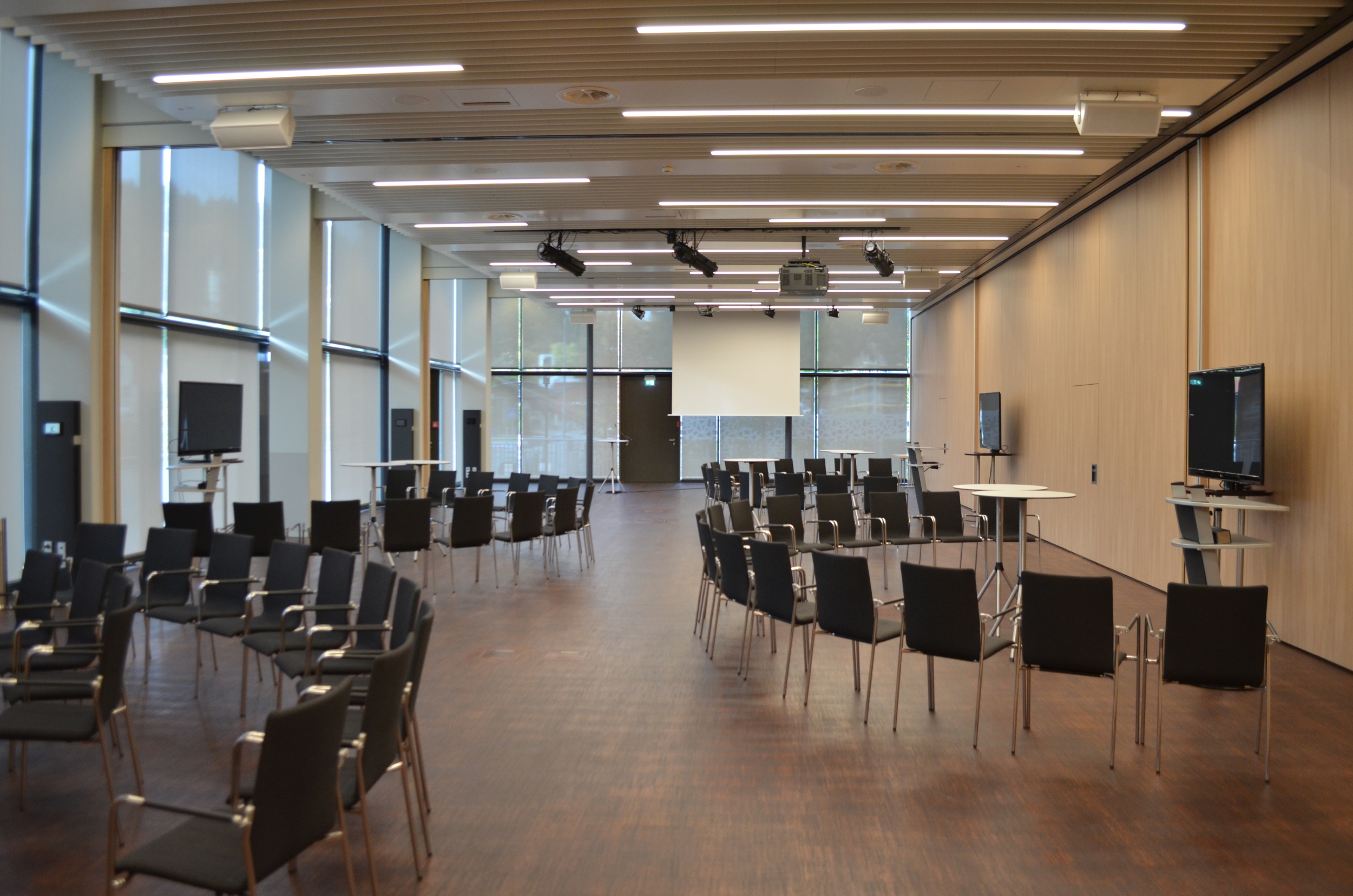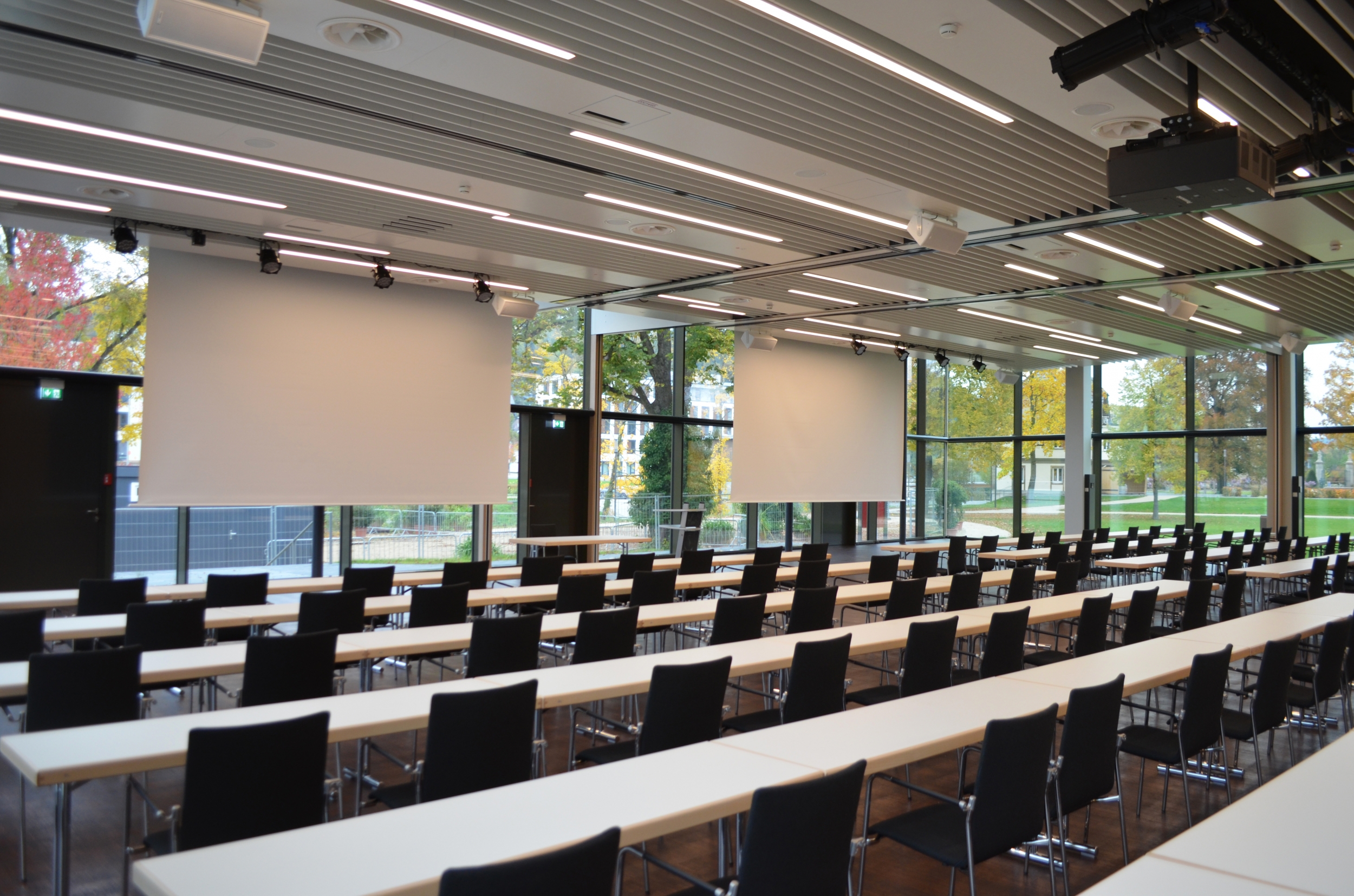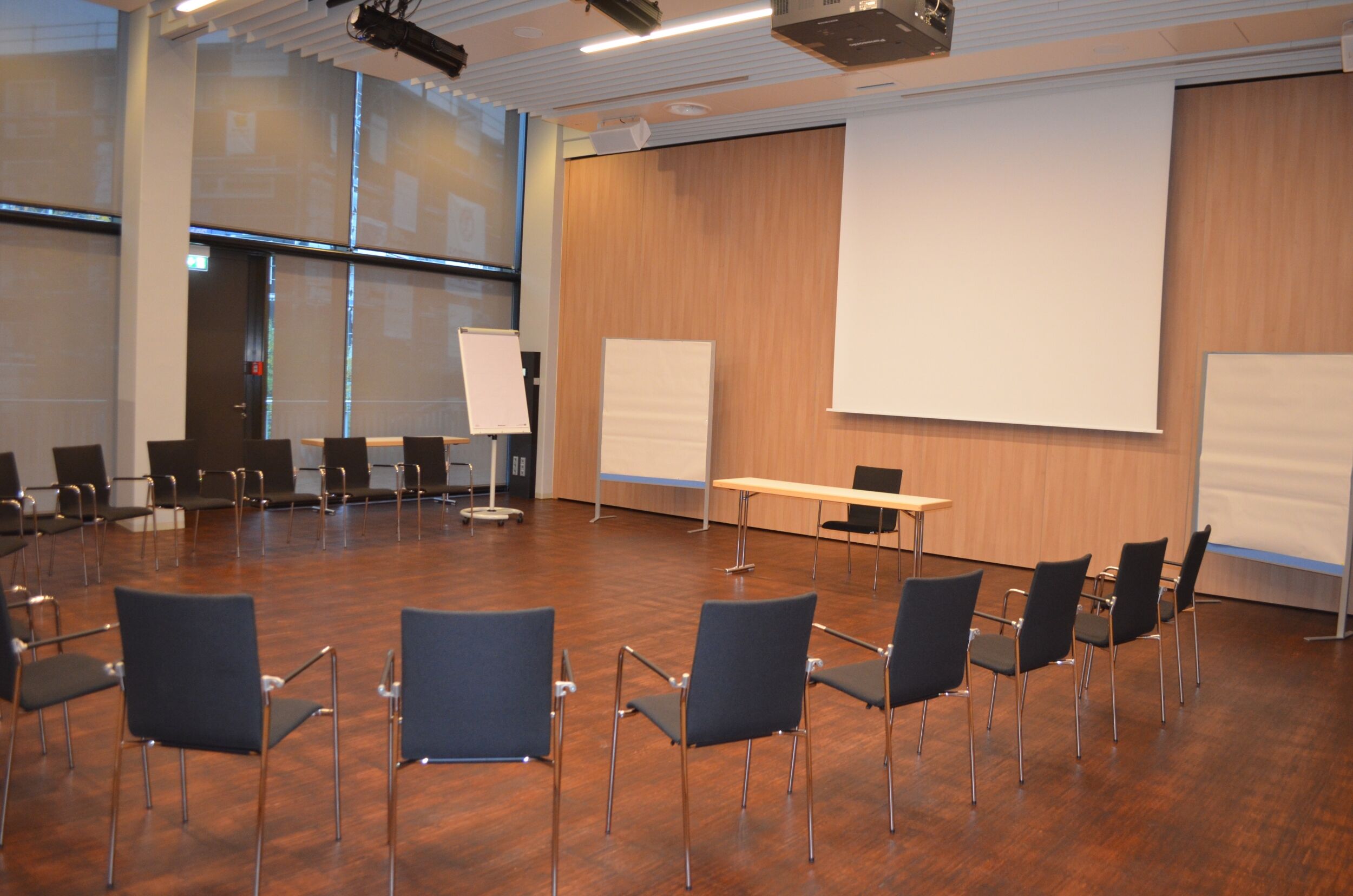 - Zwei große Leinwände mit Beamer