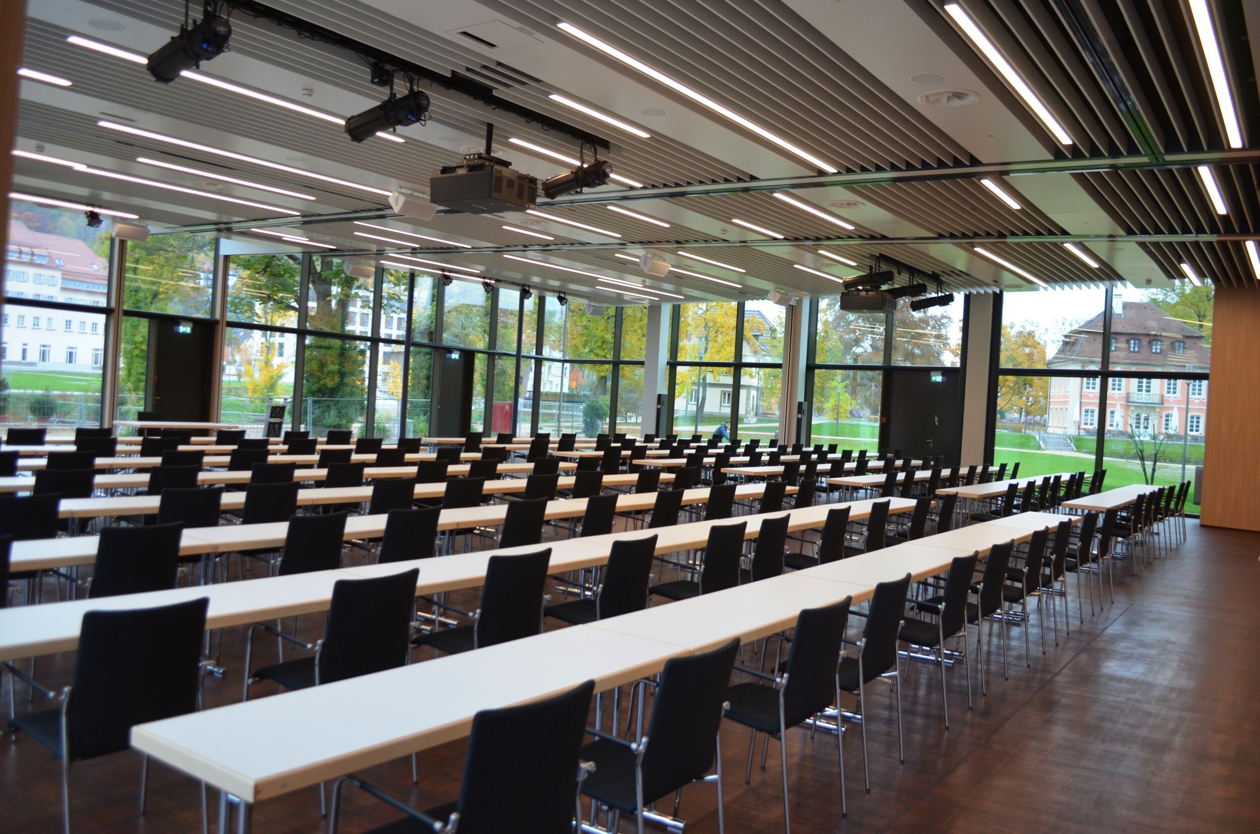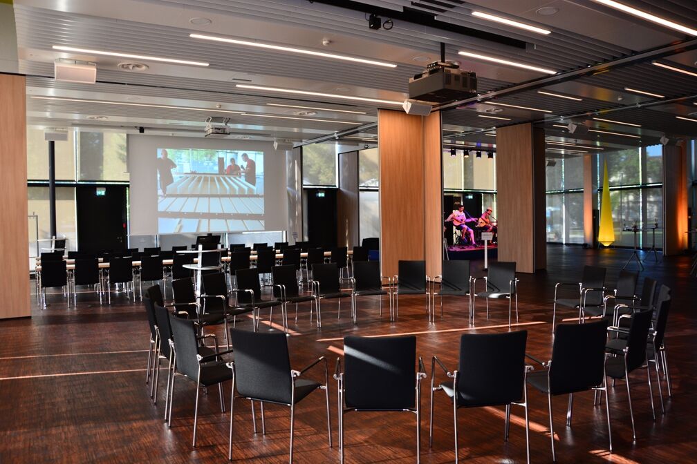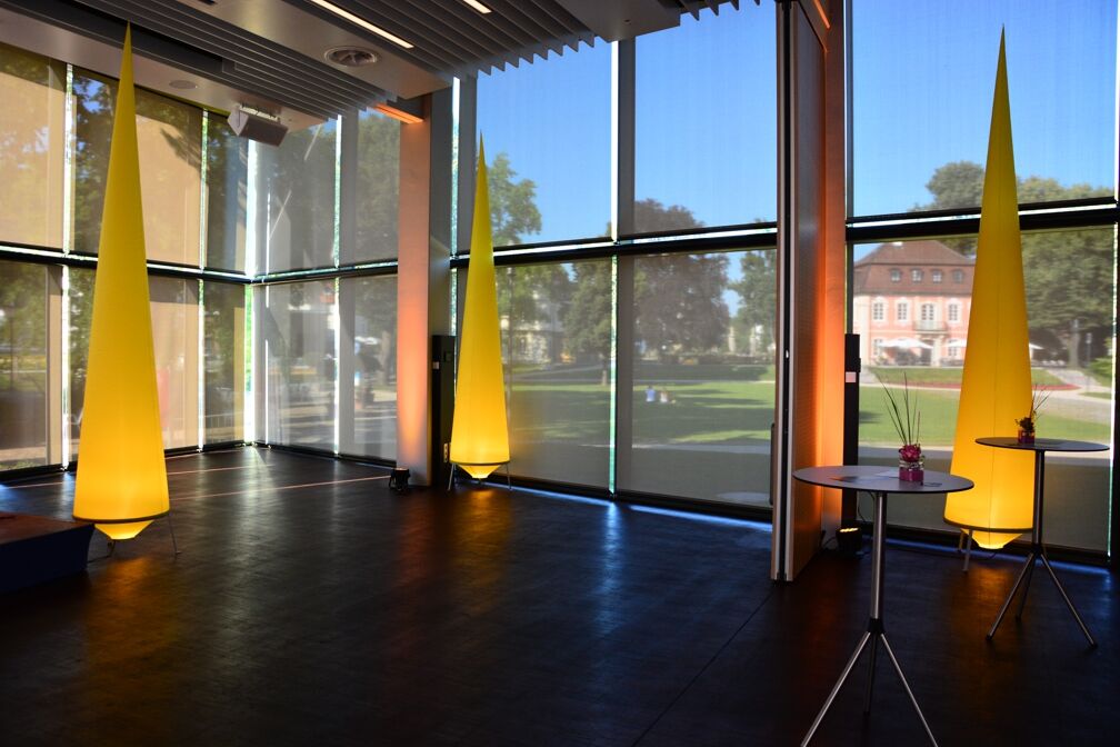 Der Leutze-Saal ist in bis zu 5 Einzelräume variabel aufteilbar und lässt sich mit den Sälen, Foyers und Freiflächen des Congress-Centrums Stadtgarten kombinieren.